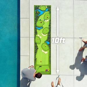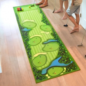 Golf Mats Putt Challenge Practice Outdoor is an exciting new putt game, suitable for golfers of all levels! The 10-foot-long “court” has 6 different target greens, scored according to different distances and difficulty. Several players compete with each other, trying to stop their ball on the green and get the most points to win. Players can score by putting, or they can shoot opponents’ golf balls off the target or carpet.